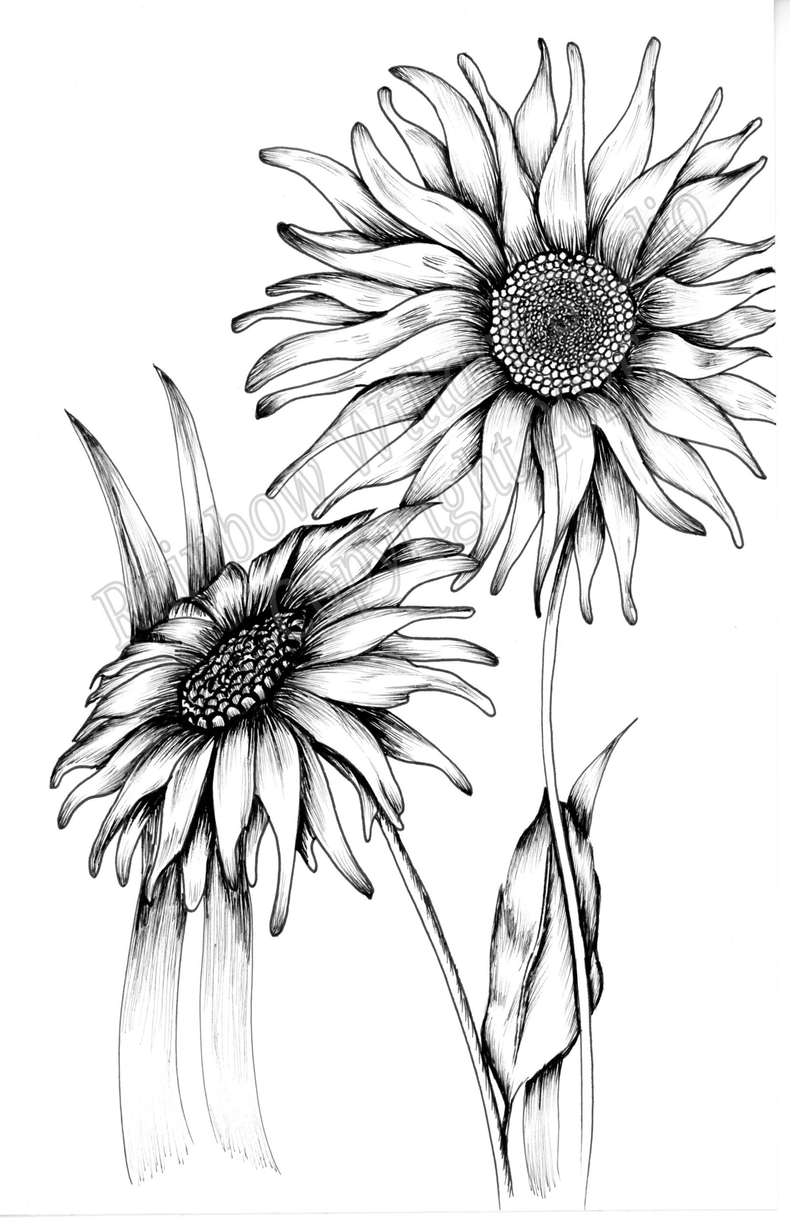 Black & White Sunflower Print