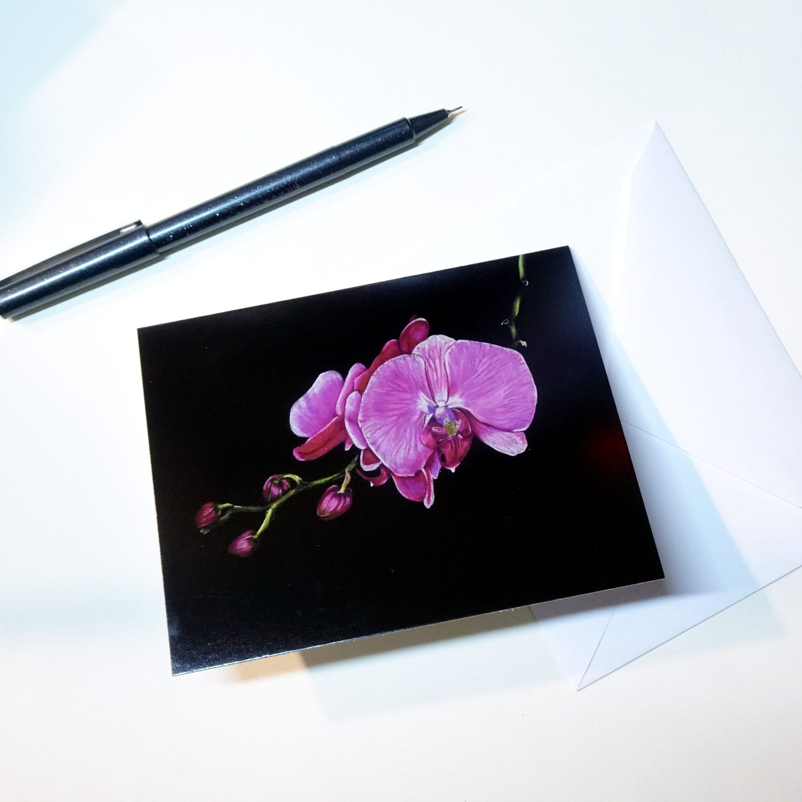 Send a little joy through the mail! This 4.5 x 5.5” greeting card features my original artwork on the front and is blank inside—perfect for birthdays, thank-yous, encouragement, or just because. Each card comes with a matching envelope and is packaged in a protective sleeve to keep it safe until you’re ready to send (or showoff)!