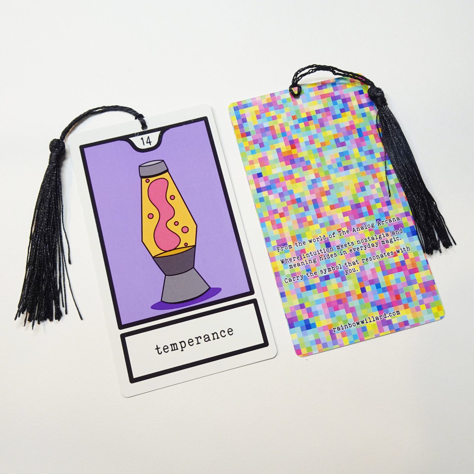 A tarot-inspired bookmark featuring nostalgic symbolism and original artwork.