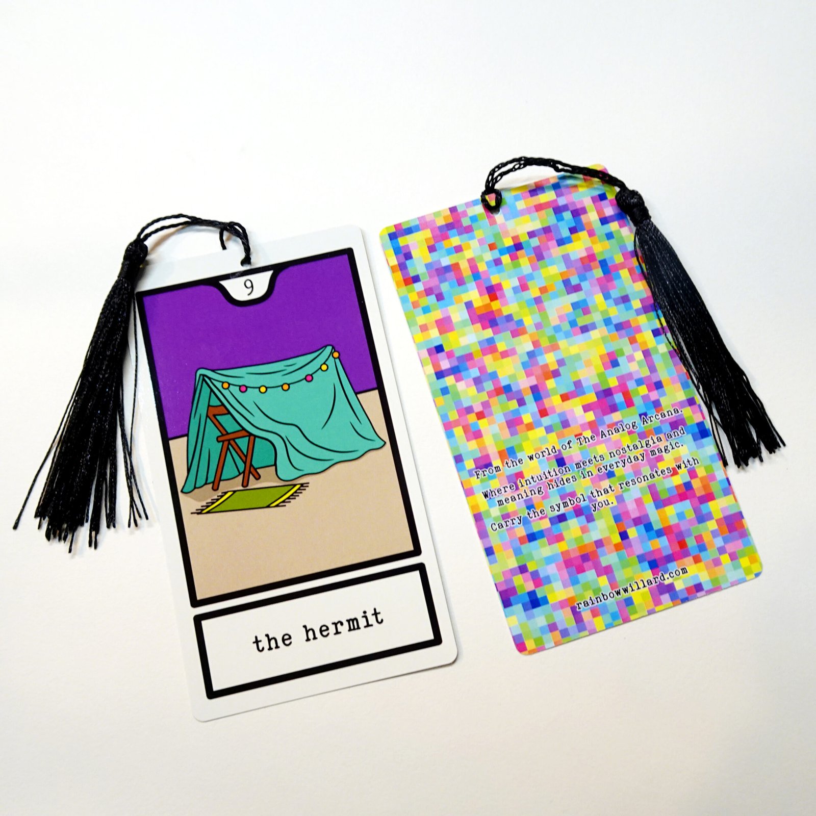 A tarot-inspired bookmark featuring nostalgic symbolism and original artwork.