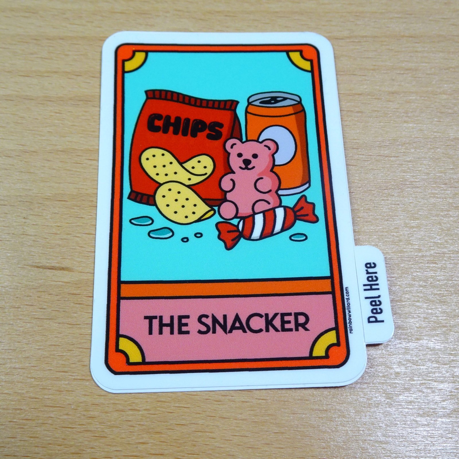 Bring a little insight and a lot of personality to your space with The Snacker tarot sticker! Each sticker measures a neat 2 inches wide by 3 inches high, making