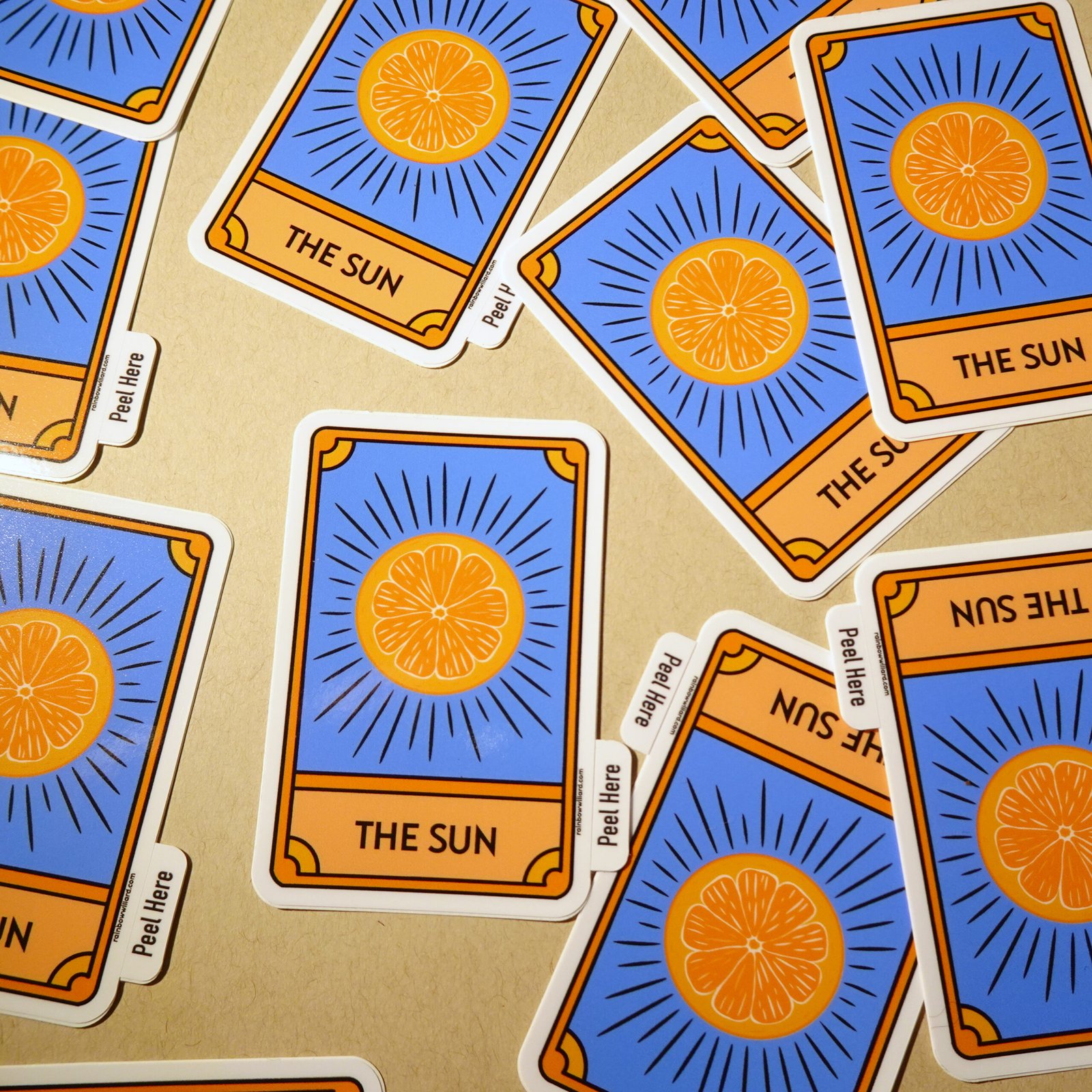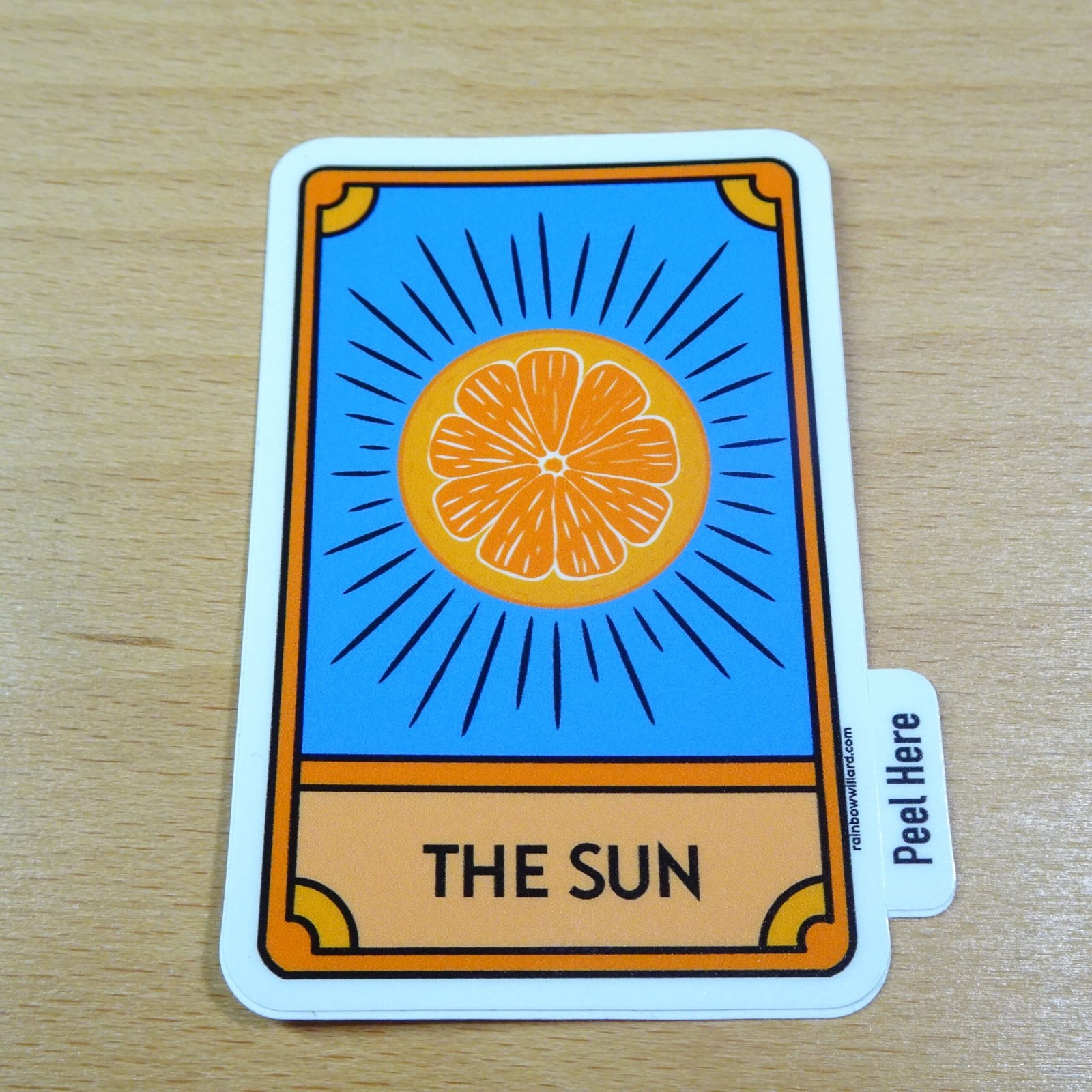 Bring a little insight and a lot of personality to your space with The Sun tarot sticker! Each sticker measures a neat 2 inches wide by 3 inches high, making it the