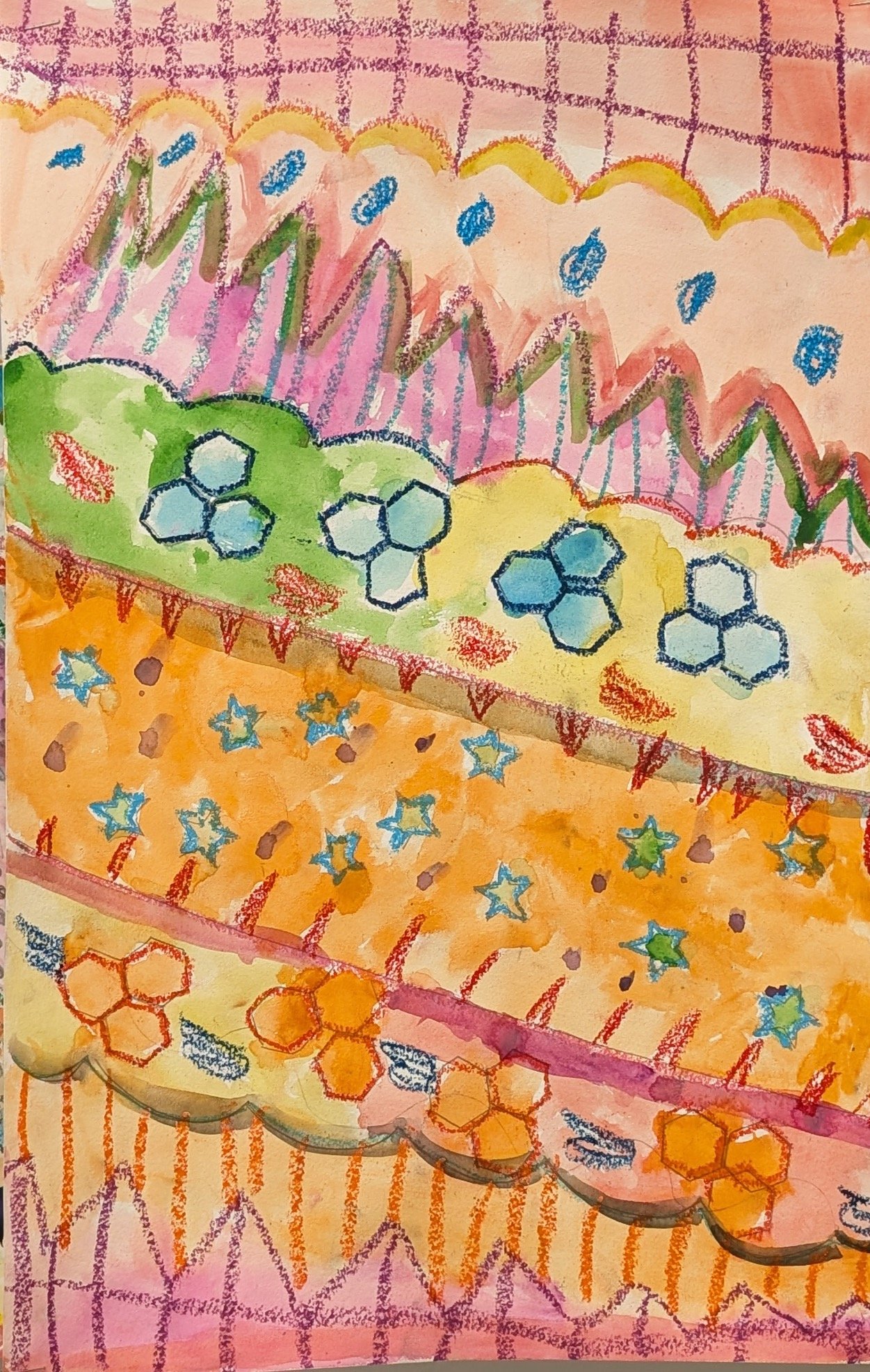 Watercolor Resist Patterns (2nd and 3rd Grade)